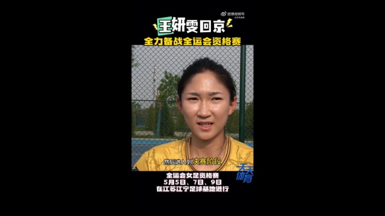 4月21日宣 本赛季效力法女甲第戎女足的王妍雯已经回国随北京队备战全运会资格赛,她在接受《天天体育》栏目采访时表示,全运会争取进入决赛阶段。