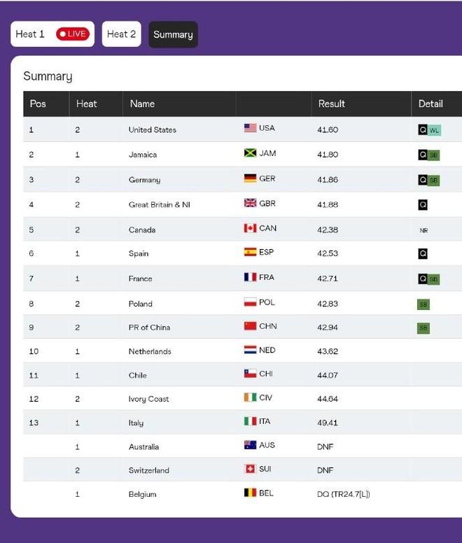 女子4100米接力:中国队跑出42秒94赛季最佳,小组第六无缘决赛