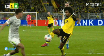 多特领先!阿德耶米世界波+联赛首球!第20分钟,梅勒后场传球失误被断,莱尔森右路横传,阿德耶米禁区弧顶重炮轰门直钻网窝,多特蒙德1-0沃尔夫斯堡!↓