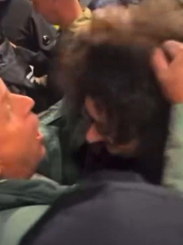 在曼联2-1切尔西的比赛中,这名球迷弗兰克来到老特拉福德观赛时,结果被一名球迷怒喷Fxxk off,并薅他的头发。