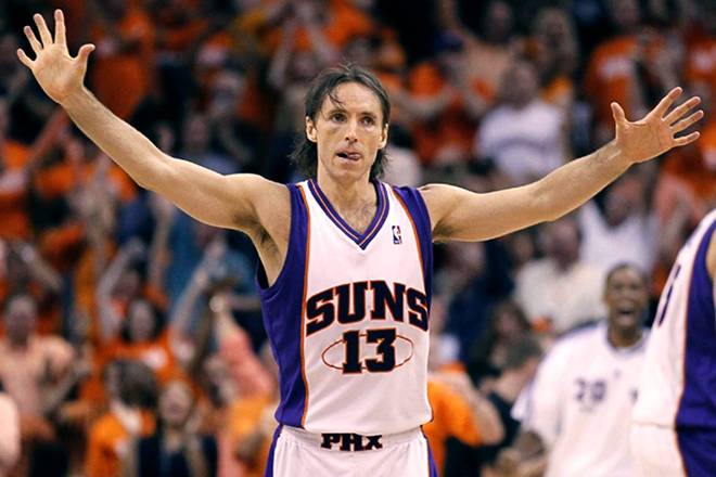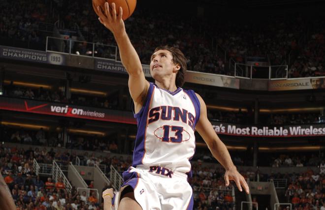 纳什与太阳的渊源颇深,他的NBA生涯两次与这支球队绑定:1996年NBA选秀大会上,他在首轮被太阳选中,度过了最初的三个赛季;2004年,纳什重返凤凰城,自此开启职业生涯巅峰——在这里,他连续两个赛季(2004-05、2005-06)斩获常规赛MVP,以精准的传球和极致的进攻组织能力,将太阳打造成联盟顶级的“跑轰战队”,五次荣膺联盟助攻王,更曾率队两度闯入西部决赛,成为无数球迷心中的“太阳图腾”。