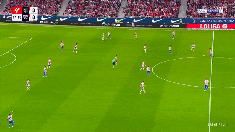 比赛第15分钟,略伦特边路起脚传中,阿尔瓦雷斯后点插上垫射破门,帮助马竞首开纪录,1-0领先;