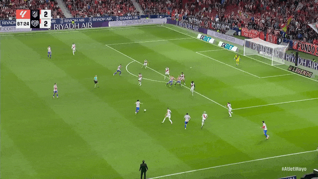 比赛第80分钟,马竞前场进攻,小西蒙尼头球攻门被扑,阿尔瓦雷斯跟进补射破门,帮助马竞2-2将比分扳平,然后属于他的表演还没结束;