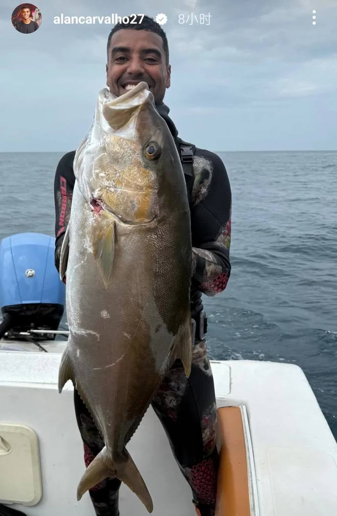 阿兰目前已告别职业赛场,最新动态,是他下海捕获了一条巨型石斑鱼。