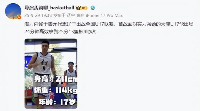 U17全国联赛首秀,于善元24分钟爆砍25分13篮板4助攻,这样的表现在青年赛场上,算得上“怪物一级”的存在,。更关键的是,他早早被辽宁一队重点考察,夏训名单里赫然有他的名字。