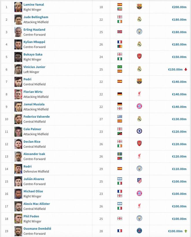 全球19位亿元先生:亚马尔2亿欧领衔,登贝莱1亿欧登榜,德英未更新