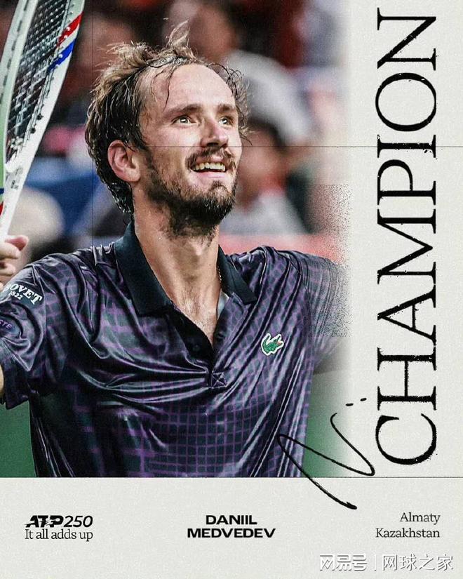 终于夺冠了!北京时间今晚刚刚结束的阿拉木图站落幕,梅德韦杰夫在决胜盘把握住了第六个破发点的机会,最终以7-5 4-6 6-3的接近比分战胜法国人穆泰,终于结束了自2023年罗马大师赛以来,长达29个月的冠军荒。