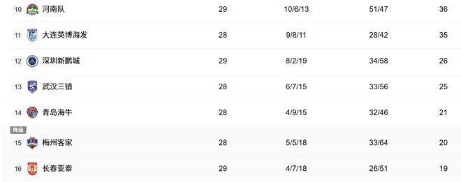而击败国安队的深圳新鹏城、25分的武汉三镇队,基本上可以宣布保级成功了!不是他们有多努力,而是对手实在是太差劲。