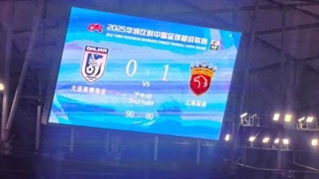 下半场,大连英博队早早用完五个换人名额,在家门口展现奋勇拼搏的态度。海港队教练组则稳坐钓鱼台,在第70分钟才用李新翔换下此役表现出色的外援梅伦多,在进攻端增添活力。大连英博队完全控制了下半场比赛的主动权,但门前把握机会能力一般,加上海港门将颜骏凌多次神勇扑救,力保城门不失。第88分钟,海港用36岁老将吕文君换下莱昂纳多,之后大连英博的定位球进攻制造威胁,头球进攻直接打中横梁,海港门将颜骏凌已经扑救倒地,但右中卫魏震神兵天降把反弹的皮球顶出底线。最终,上海海港队凭借这场惨胜,夺得2025赛季中超联赛冠军,这也是俱乐部历史上的第四座冠军奖杯,更是2023、2024、2025赛季夺冠的三连冠。