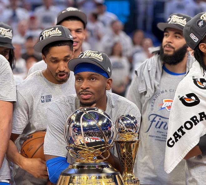 就在今天,卫冕冠军传来喜讯,SGA最强帮手即将上线!据NBA名记Shams报道,雷霆队已经将杰伦威从伤病名单中移除,他将在明天对阵太阳队的比赛中迎来赛季首秀。杰伦威何许人也?上赛季,杰伦威场均贡献21.6分+5.3篮板+5.1助攻,入选了全明星阵容+最佳防守二阵+最佳一阵;季后赛23场下来,杰伦威场均贡献21.4分+5.5篮板+4.8助攻+1.4抢断。杰伦威是雷霆队二当家,也是SGA身边攻防最靠谱的最强帮手,这也是雷霆队在休赛期为他送上一份最高5年2.89亿美金的顶薪合同的原因。不过,杰伦威由于手腕手术康复已经连续缺席19场比赛,无缘常规赛评奖,这份顶薪合同最终变成了5年2.41亿美金,损失高达4800万美金。