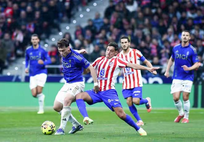 比赛伊始,马德里竞技便展现出了主场作战的绝对统治力。球队的中场发动机开始高速运转,通过精准的短传渗透和边路的快速突击,持续向奥维耶多的防线施压。反客为主的奥维耶多则试图通过密集防守来限制马竞的进攻空间,伺机寻找反击的机会。然而,在马竞水银泻地般的攻势面前,客队的防线在开场不久后便显得摇摇欲坠。