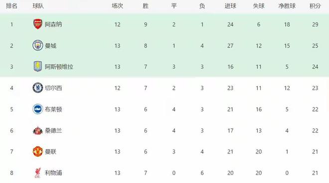 - 英超 | 疯狂21!阿森纳5分领跑英超积分榜萨卡两造乌龙建功