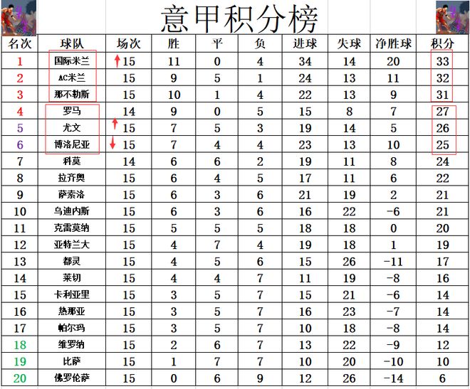 - 意甲 | 意甲第14轮结束了7场比赛,最新积分榜如下!