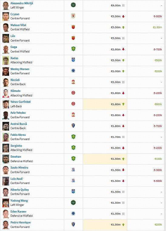 - 中超 | 中超球员身价榜:米特里策居首,克雷桑第二,王钰栋第19