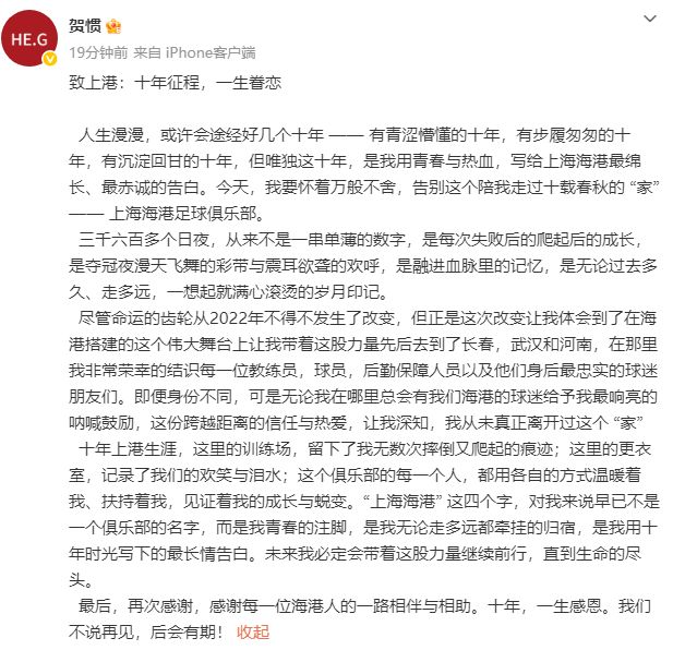 10年,这次真要离开了!前国脚深情告别上海海港,近4年租借在外