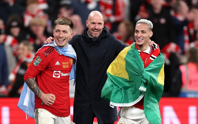 2022年至2024年,滕哈格登陆英超担任英超豪门曼联俱乐部主教练,他率领这支英超豪门斩获联赛杯与足总杯冠军共计2座冠军。2024年10月,因为带队战绩不佳,滕哈格黯然下课。