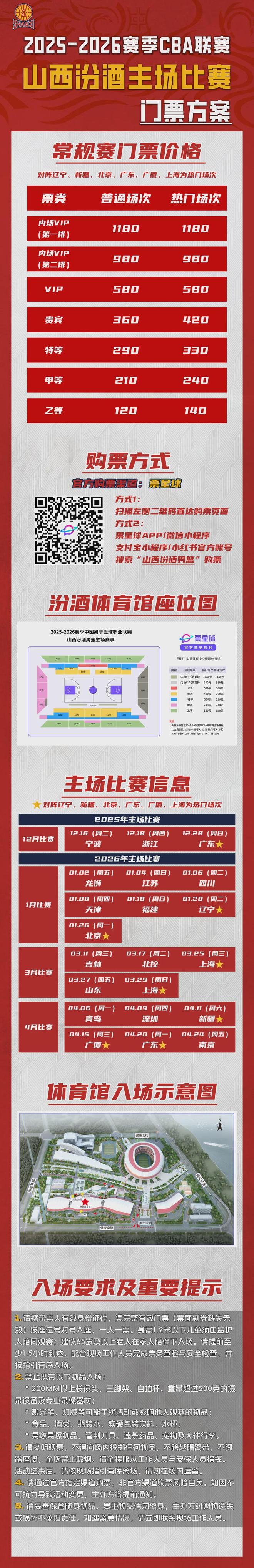 - CBA | 票务公告山西汾酒一月剩余主场门票即将开售!